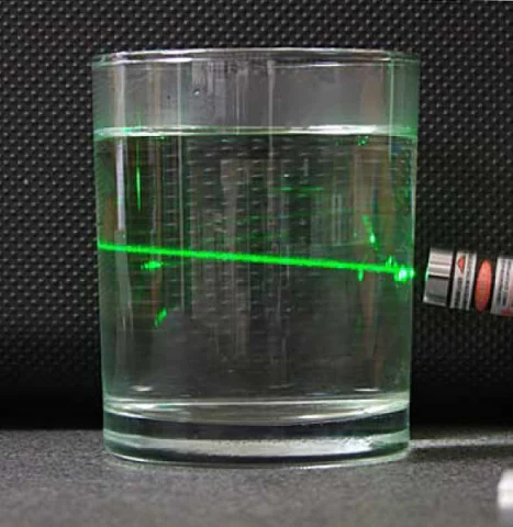Eine besondere Eigenschaft der metallischen Kolloide ist die Streuung seitlich einfallenden Lichtes (Tyndal Effekt). An der Intensitat dieses Strueffektes kann man einen groben Eindruck zur Konzentration der Kolloide erhalten. Laserstrahl im kolloiddalen Silber